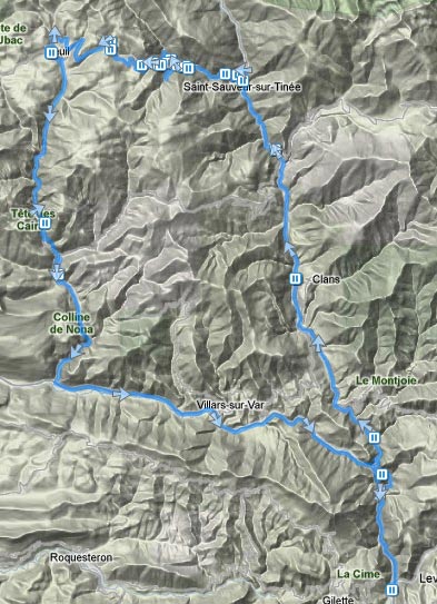 Parcours : Plan du Var – Saint Sauveur sur Tinée – Col de la Couillole – Beuil – Villars sur Var – Plan du Var