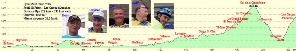C’est fait ! J’ai vaincu cette première journée, quelque peu fier et surtout très reconnaissant envers mes compagnons de route, Henry, Didier, Christian et Alain. Chapeau bas les gars … Je ne vous connaissais pas, mais cela valait le détour de rouler à vos cotés !